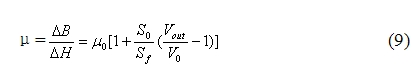 增大的導(dǎo)磁率的概念非常有用,是本文中所設(shè)計(jì)的測量的基礎(chǔ)。μinc可以用所測得的dH=α·dI 以及Vout來表示,如下所示: